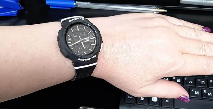 Выражаю вам благодарность ! У меня были некоторые сомнения в правильности выбора , но теперь я уверено рекомендую всем ! Искала часы для активного отдыха , что бы в бассейн , в огород не переживая за часы. Эта модель черная (не маркая), полимерная (легкая) с белыми рисками и стрелками( хорошо просматривается) с отличной подсветкой . Ношу не снимая , даже на работу потому что не смотря на то что часы спортивные выглядят элегантно . Спасибо за качественный товар !!!