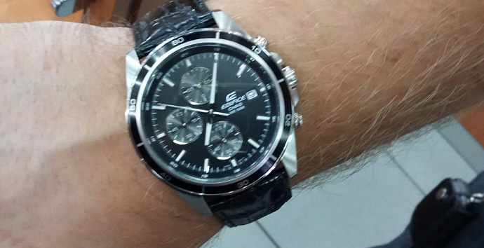 Хоть и говорят, что часы не дарят, но я не суеверная. И на очередной день рождения мужа решила подарить ему наручные часы. Выбирала долго, хотелось, чтобы часы были и красивыми, и практичными и удобными. Выбирала среди фирм, проверенных временем. Решила приобрести Casio - эта фирма на слуху у меня еще с детства, она предлагает довольно большой модельный ряд и по весьма доступным ценам.Остановила свой выбор на модели Edifice EFR-526-L. Это классическая модель кварцевых часов с круглым циферблатом и кожаным ремешком (хотя, как показала практика, эти часы отлично смотрятся с практически любым стилем одежды).Часы Edifice EFR-526-L имеют аналоговый циферблат черного цвета, корпус которого выполнен из нержавеющей стали. На циферблате имеется также секундомер, позволяющий вести отсчет времени до 1 часа, и текущая дата. Стрелки часов и деления на циферблате имеют специальное покрытие, благодаря которому они светятся в темноте.Часы идут довольно четко, за все время использования ни разу не приходилось подправлять время.На циферблате есть надпись о водонепроницаемости часов на глубине до 100 метров. Специально мы эксперимент на прочность не ставили, но однажды во время отпуска муж забыл про часы и плавал с ними в бассейне - с ними ничего не случилось.С тыльной стороны корпус часов имеет винтовой фиксатор, что позволяет ему оставаясь непроницаемым все же оставлять легкий доступ к аккумулятору. Сам аккумулятор еще не меняли, тк не было необходимости. Ремешок у часов сделан из кожи (о чем свидетельствует надпись изнутри), имеет красивое тиснение "под крокодила".Заказывала часы в надежном интернет-магазине, «Мегачас”чтобы быть уверенной в оригинальности. В коробочке находились часы, паспорт, инструкция по эксплуатации на русском языке, фирменная упаковка, гарантийный талон.