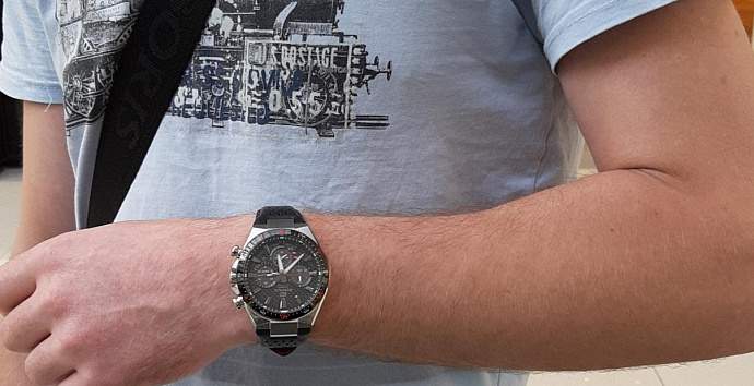 Стильный дизайн, сапфировое стекло, солнечный аккумулятор, карбоновый циферблат! Достойные часы! Окружающие люди оценили по достоинству мой выбор!