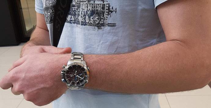 . Модель EQB-800 также выполняет автоматическую регулировку времени четыре раза в день с помощью Системы точного времени, обновляющей внутренние данные часов по летнему времени (DST) и часовому поясу от смартфона. В модели также предусмотрена функция мирового времени, позволяющая с помощью специального приложения выбрать нужный из более чем 300 городов и установить отображение времени в нем.