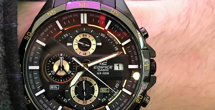 asio выпускает часы-хронограф EDIFICE EFR-556 на стальном браслете и на ремешке из полимерного материала. Новинка со спортивным дизайном оснащена секундомером,задней крышкой с винтовым фиксатором. А модель на стальном браслете обладает раскладывающейся застежкой, расстегиваемой одним касанием. Все часы этой линейки водонепроницаемы до 10 Бар и отображают дату.