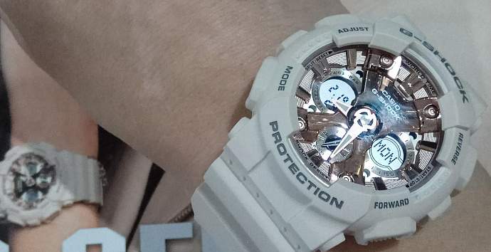 Представляем новые модели для G-SHOCK S-Series. В основу лег корпус GMA-120, модель с металлическими акцентами на циферблате и оригинальным стилем, отлично сочетаются с повседневной модой.  Корпус имеет меньший размер корпуса, в отличие от других моделей G-SHOCK, что позволяет им идеально садиться на женское запястье. Ударопрочные. Ударопрочная конструкция защищает от ударов и вибрации.Устойчивость к воздействию магнитного поля. Корпус часов спроектирован таким образом, что часы полностью защищены от внешнего воздействия магнитного поля.Светодиодная автоподсветка. Светодиод подсвечивает дисплей часов. При повороте часов в сторону лица подсветка дисплея осуществляется автоматически, благодаря функции «Автоподсветка».Мировое время Обеспечивает отображение текущего времени в некоторых городах и определенных регионах мира.Формат времени 12/24 Время может отображаться как в 12-часовом, так и в 24-часовом формате.Секундомер (1/1000 сек. макс. 100 час.) Точное измерение истекшего времени касанием кнопки. Дробь соответствует величине, с точностью до которой производится измерение, а число часов - максимально измеряемому времени.Сплит-таймер Таймер обратного отсчета (1 мин. макс. 24 час.) Секундомер, работающий в обратном направлении: при окончании отсчета (0 минут, 0 секунд) издается 10 секундный сигнал. Цифры указывают интервал и максимальное время для установок обратного отсчета.Ежедневный сигнал, ежечасный сигнал (5) Ежедневный сигнал звучит каждый день в установленное вами время. Число показывает, сколько ежедневных сигналов имеется. Функция ежечасного сигнала обеспечивает подачу звукового сигнала при наступлении каждого нового часа.Ежечасный сигнал Подача сигнала при наступлении каждого новго часа.Будильник SNOOZE. Функция позволяет повторять сигналы будильника через определенный интервал времени. Например, Вы установили сигнал будильника на 07:00. Будильник сработал в указанное время, но Вы не проснулись. Тогда включается функция snooze и через несколько минут будильник срабатывает снова.Полностью автоматический календарь Автоматически учитываются месяцы разной продолжительности и високосные годы.